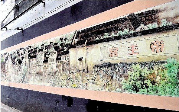 最近,一幅藏于江漢區檔案館的水墨畫《漢口帝主宮》,被民間畫師周建設“搬”上了江漢區民族街和平社區的墻面,向人們展示了漢正街一段鮮為人知的歷史。