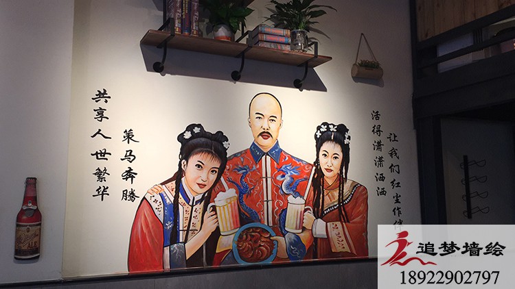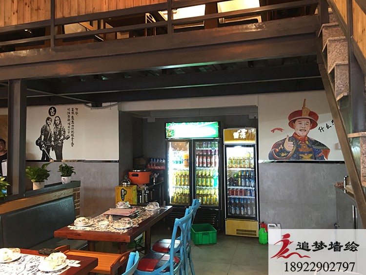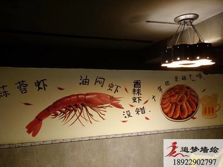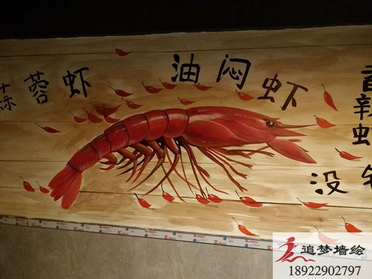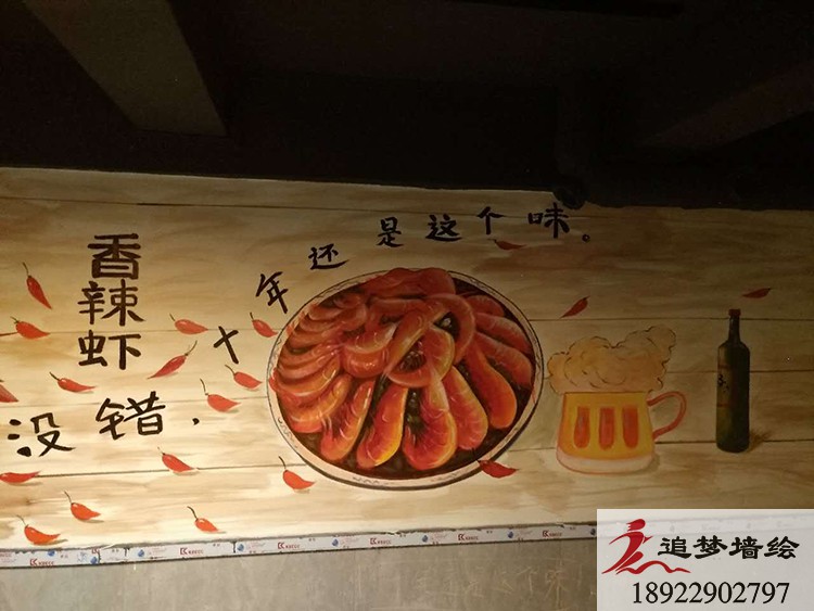 墻繪項目介紹:五阿哥香辣蝦特色餐廳,帶你回憶曾經的小燕子。一起吃蝦喝酒闖江湖