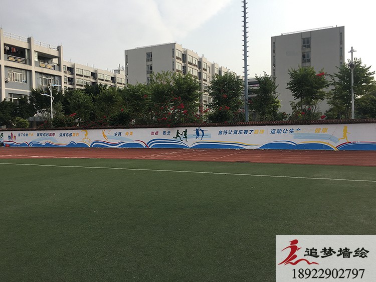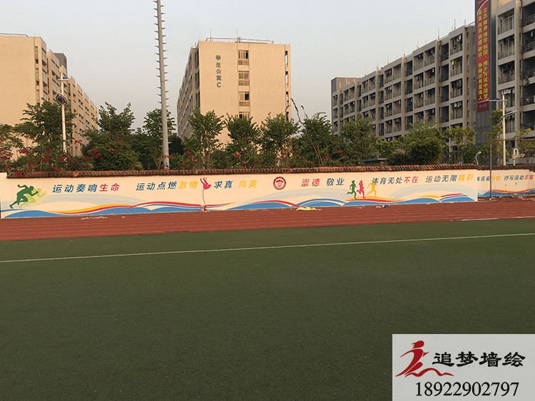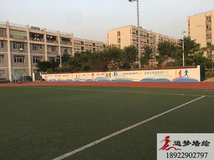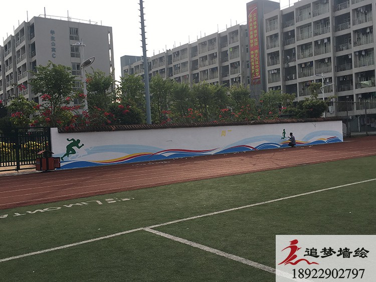 墻繪項目介紹:在運動場上揮灑青春,運動奏響生命運動點燃激情,充滿活力和樂動的圖案讓運動場更添幾分色彩