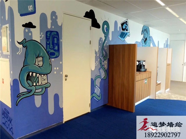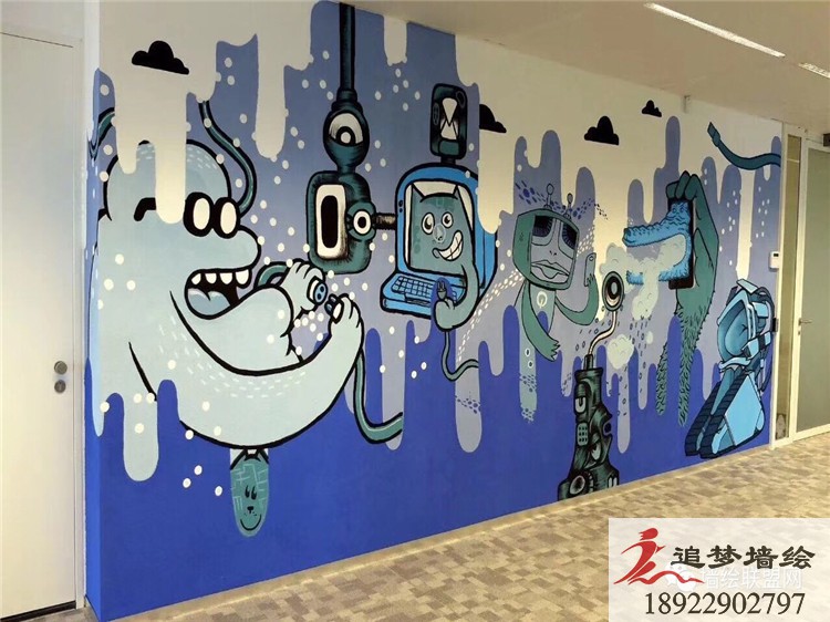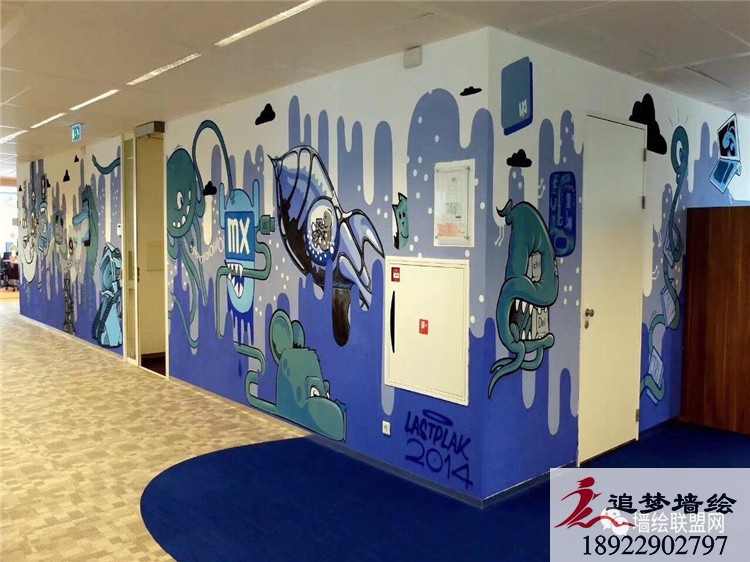墻繪項目介紹:此次彩繪以冷色系藍色為主調,搭配讓人激情的暖色系。
