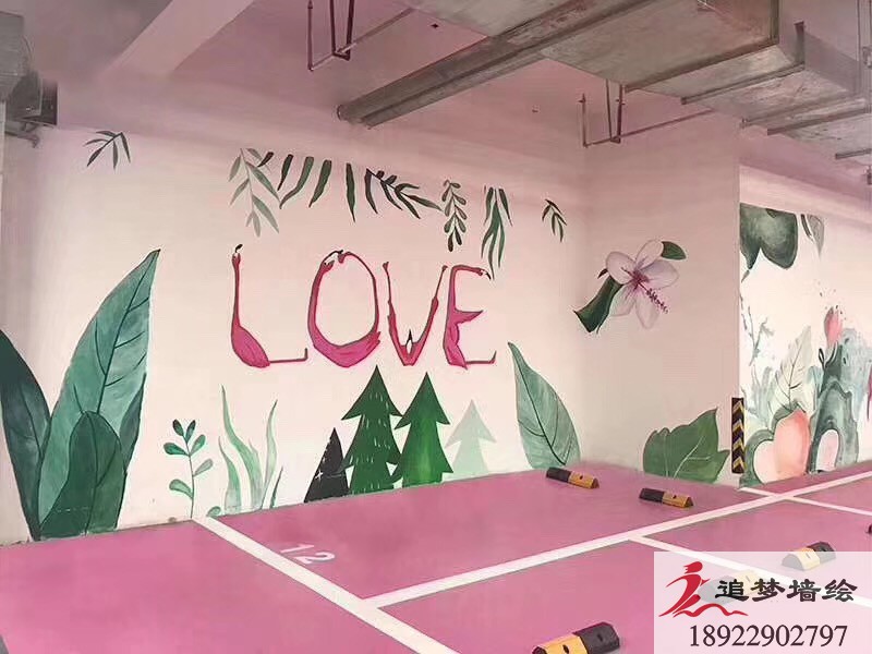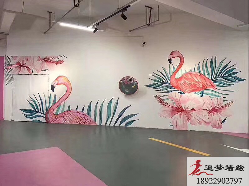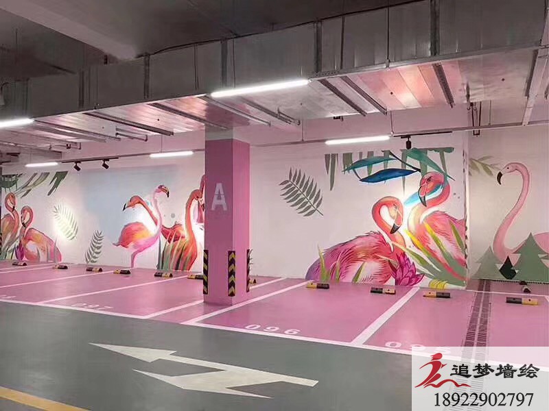 墻繪項目介紹:此次彩繪工作的主要內容為“溫馨”“活力”以及“時尚”。為此,本司專門設計了具有象征著自由灑脫,優(yōu)雅美麗,青春活力粉色的火烈鳥畫。以火烈鳥主各不相同的姿態(tài),再搭配熱帶植物為停車場的環(huán)境增添十分生動的氣息。把清冷的停車場的進行一番美化完全就是一個十分漂亮的小空間。