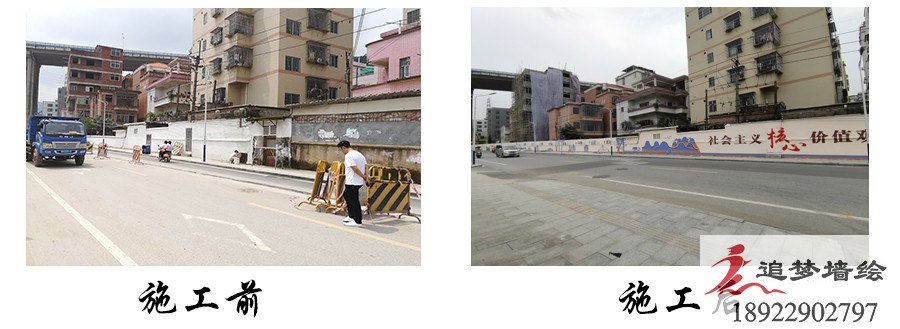 總面積是在2000方,2公里長的文化墻,效果的確震撼大氣,辛苦我們繪畫師10天的付出。 咱們來看看繪畫前,繪畫后的一個對比。