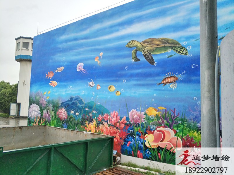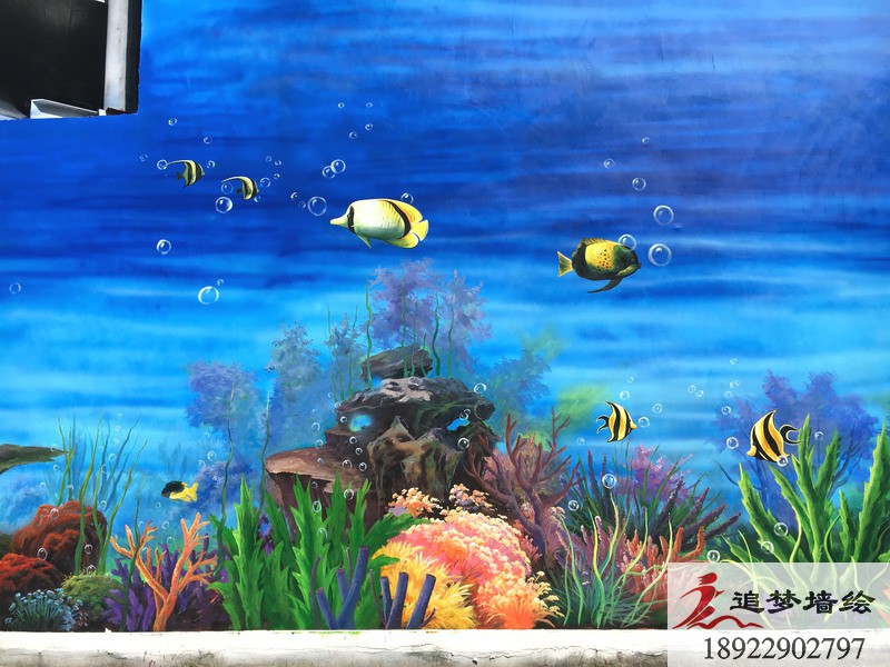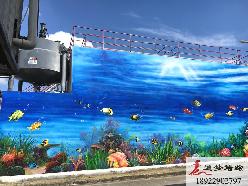 清新的海天藍加上五彩繽紛的海洋生物,構造出一副讓人過目不忘,身臨其境的海底世界。我們設計這套3d海洋世界墻繪的目的,是為了讓公司的員工,能在繁瑣的工作中,得到一些視覺上的放松,同時也讓來尋求合作的老板們看到這個公司的與眾不同。在墻繪施工前期,我們已經通過上門服務,初步了解了繪畫墻面的情況已經整體建筑的走向。之后我們通過與該公司的項目負責人的溝通以及創建墻繪工作群,對這套墻繪方案進行深入的溝通與探討,最終呈現出這座“海底世界”的效果。我們追夢墻繪相信,一個好的墻繪不僅是為了視覺的享受,同時要兼具公司的內涵與人道主義精神。追夢墻繪一直在,為所有需要墻繪的朋友們努力著,準備著!