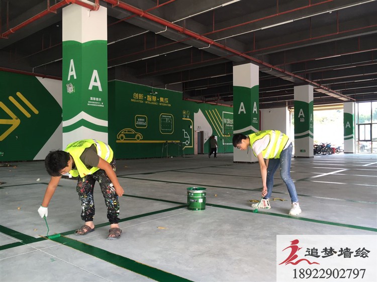 這是在東莞松山湖的一個停車場彩繪,瑞鷹國際,這里是科技產業地,目前是辦公為主。現在這里的建設已經快完成了,所以我們來為他們的停車場簡單的畫幾筆,在三四年前,我們就已經來這里畫過了,當時畫的飯堂還有一些小小的地畫?,F在這個停車場相比之前那些地方的大很多,好在客戶要求畫的東西不多,也就四五天的時間就畫完了,主要都是畫一些標識和標語,還有停車位劃分線等。