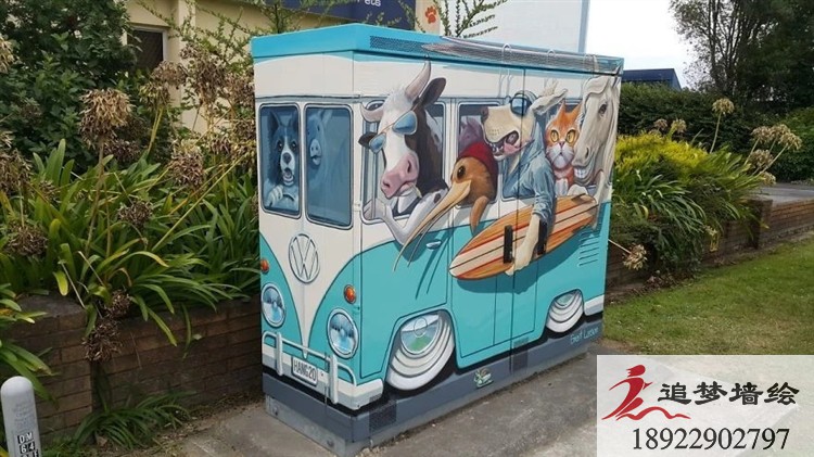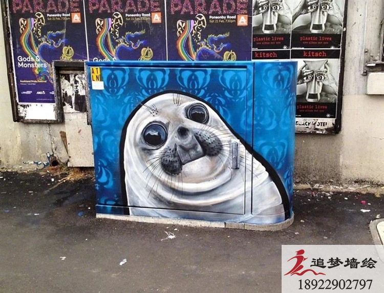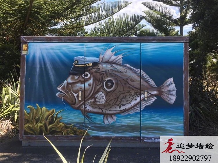 在佛山順峰山有很多電箱穿上了“新衣”,這是我們追夢墻繪的小小杰作,這些可愛有趣的繪畫勢必會更加吸引游客在此玩耍。憨憨可愛的小海豹、神秘的黑色鰻魚、威武的“軍人”大魚、有趣的相機、收音機、動物巴士車等等。這些有意思的畫面,使得這些電箱不再是枯燥鐵皮,讓人眼前一亮,拍照留念。