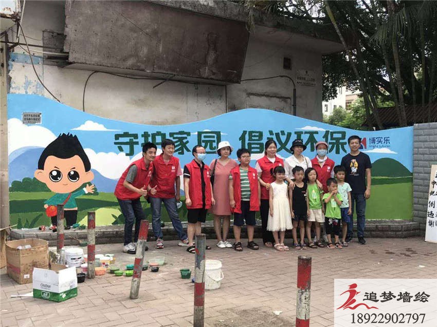 墻繪項目介紹:佛山禪城是一個美麗的城市,為了更好的守護這個小城,我們為他們打造了守護家園,倡議環保的設計主題,以環保為主題,我們追夢墻繪策劃。我們設計師切合實際,以藍天白云綠色環境為主圖形,搭配不一樣分類的垃圾桶。把畫面做的主題一目了然。畫面精彩生動,色調明快,協調統一,展示了環境的美好,愛護環境人人有責的內涵。
