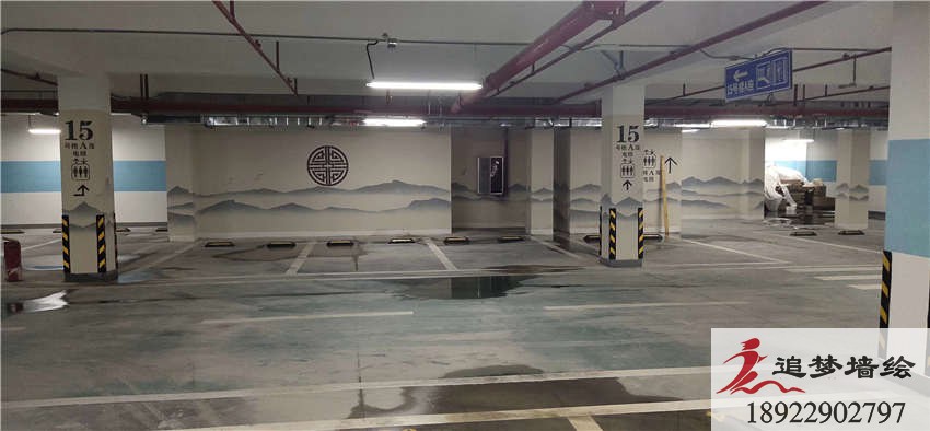 墻繪項目介紹:停車場主要繪制彩繪圖案是具有代表性的,連綿不絕的山體,整體設計簡約大氣,自然。配合指引牌讓大眾更容易找到位置,且不失簡陋。