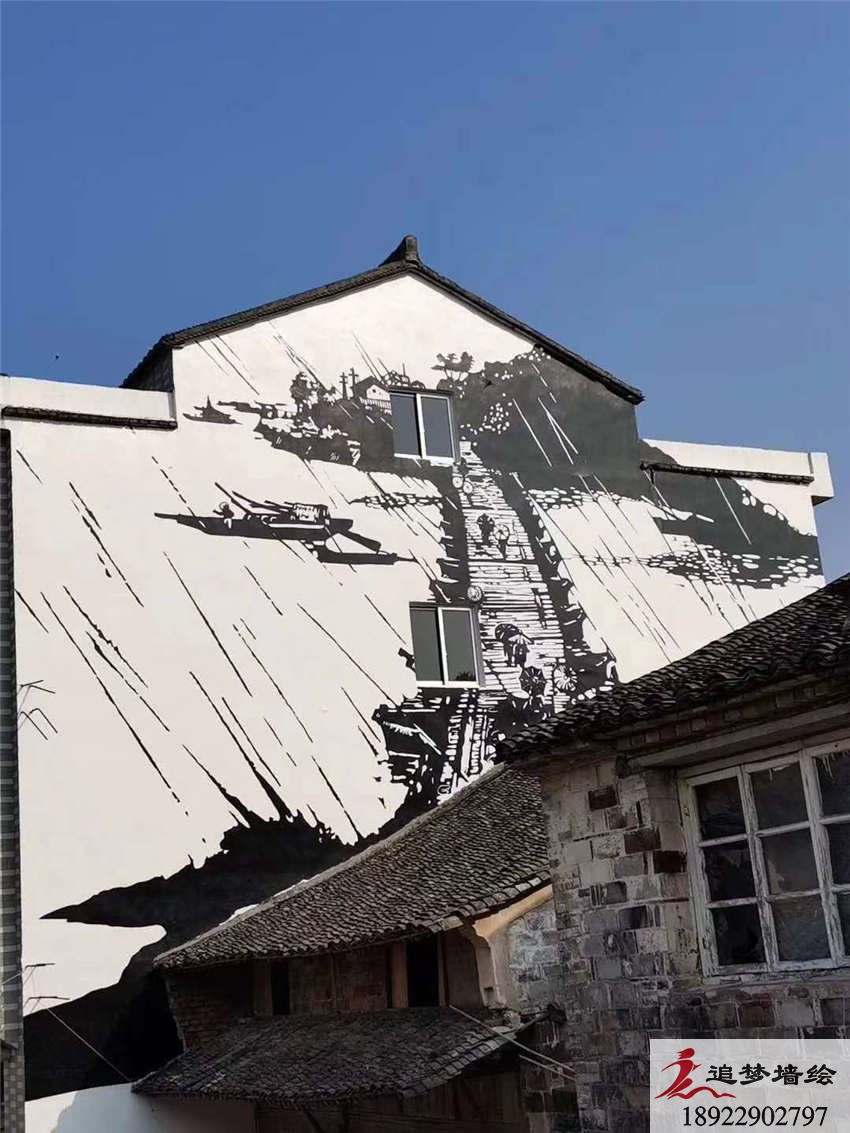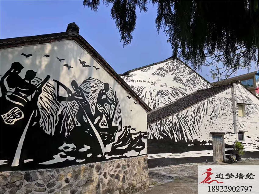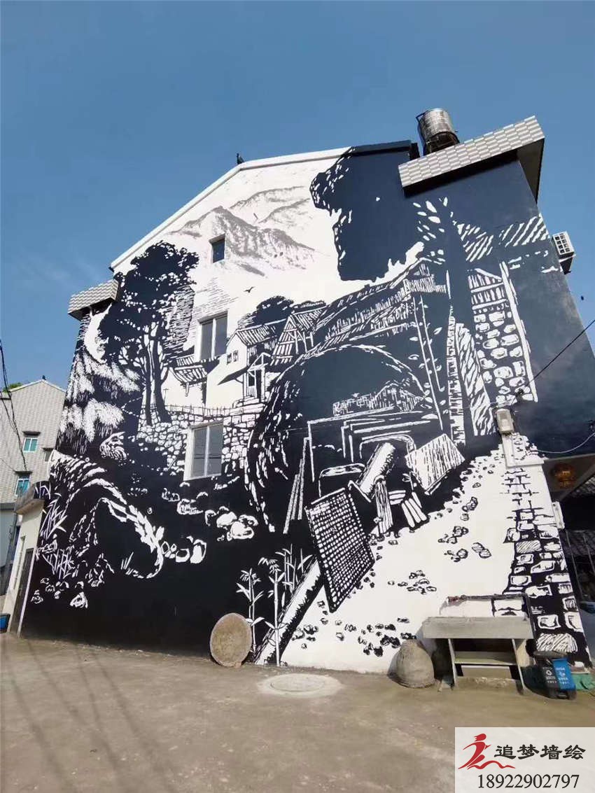 墻繪項目介紹:這次的項目主要繪制彩繪圖案是以黑白色調和風格突出主題。