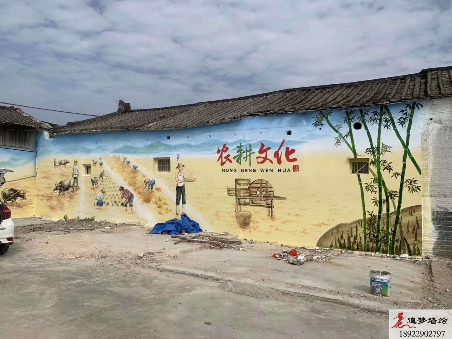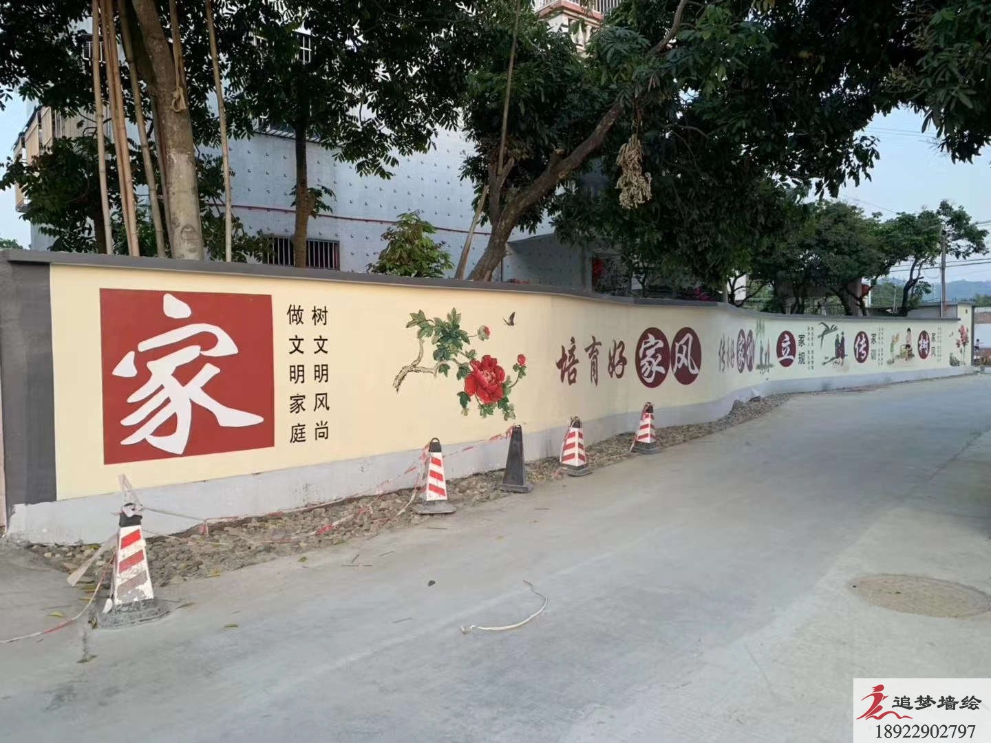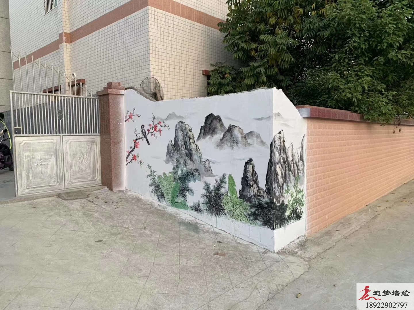 墻繪項目介紹:這次的項目主要繪制彩繪圖案整體設計圍繞鄉村振興戰略為主題,突出美化環境的主題。圖案是以鄉村氣氛為主的山水,荷花,采用圖文結合的表現形式,突出了自然。墻繪整體基調樂觀積極向上