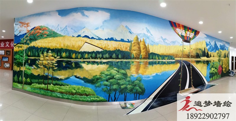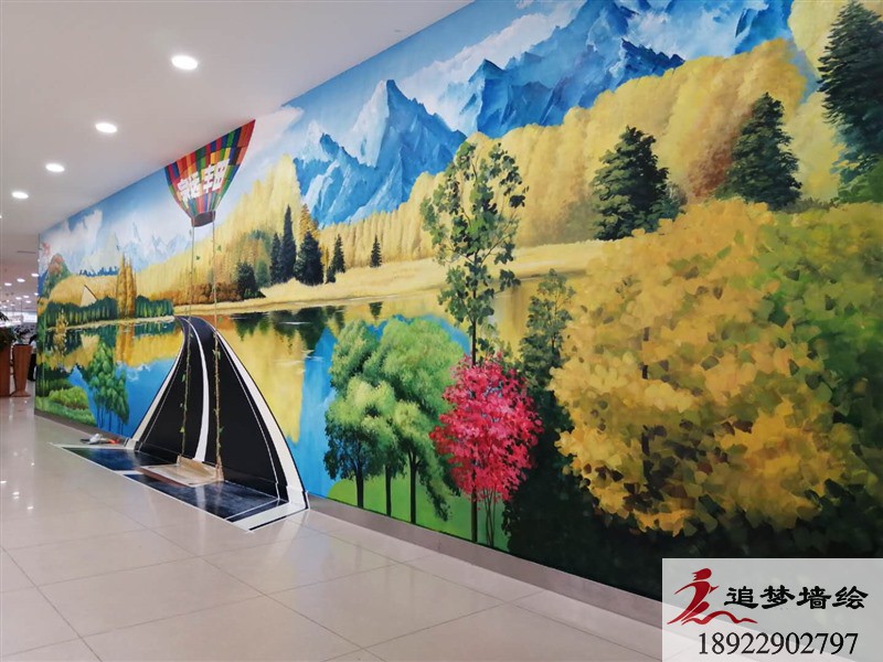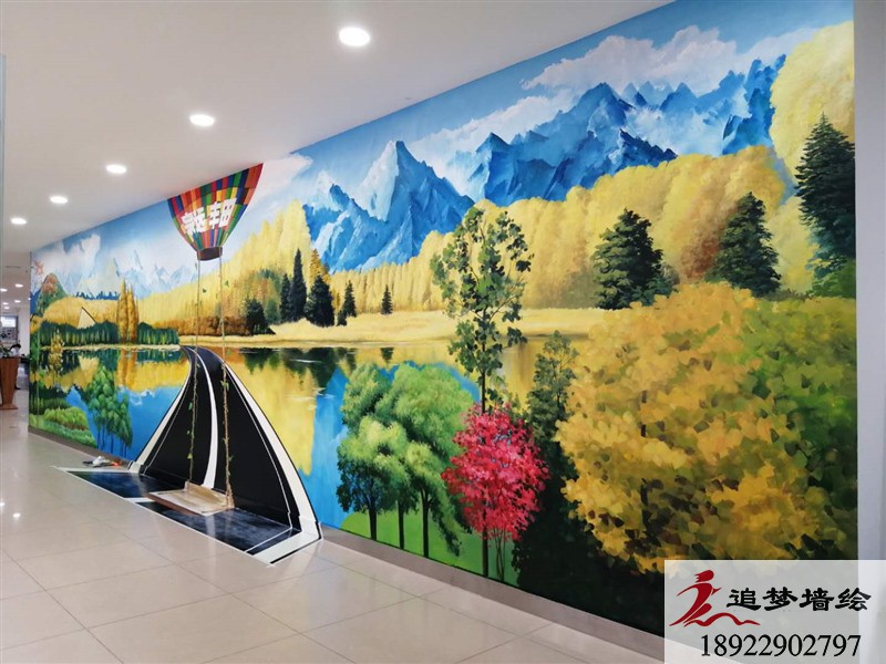 墻繪項目介紹:柯木塱這個項目的彩繪在不同的墻面設計不同的彩繪圖案。我們設計師以油畫風格為主,用各種各樣和諧的山水場景把畫面做的精彩生動,色調明快,協調統一,展示了符合山水自然氣息的內容。