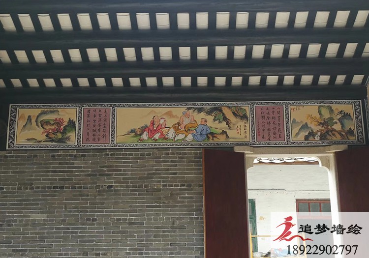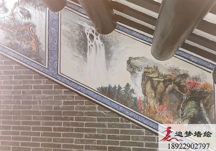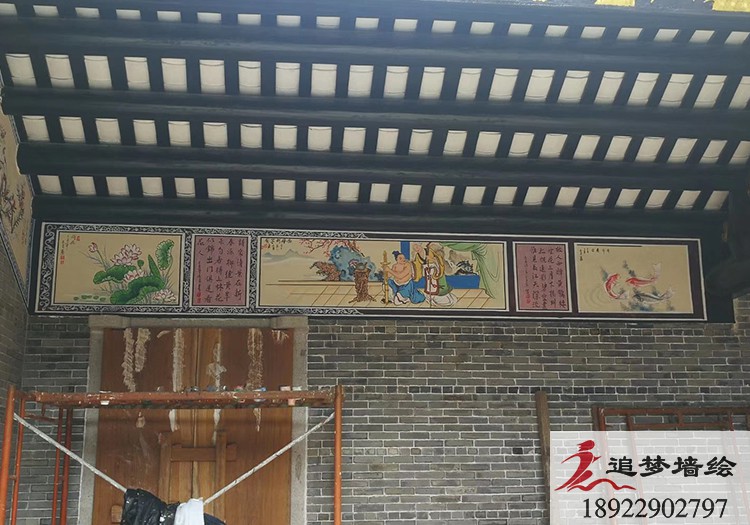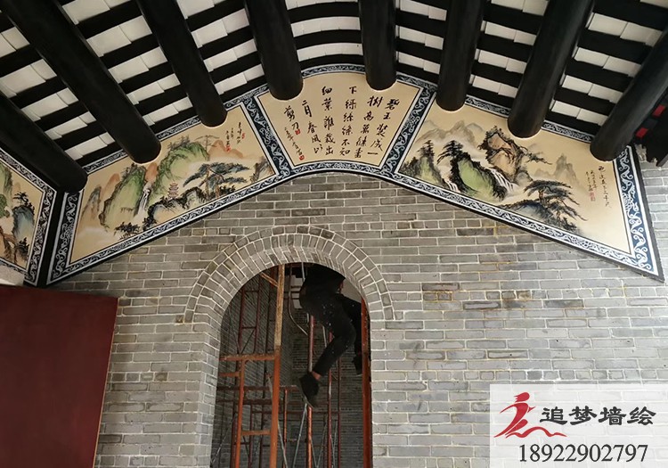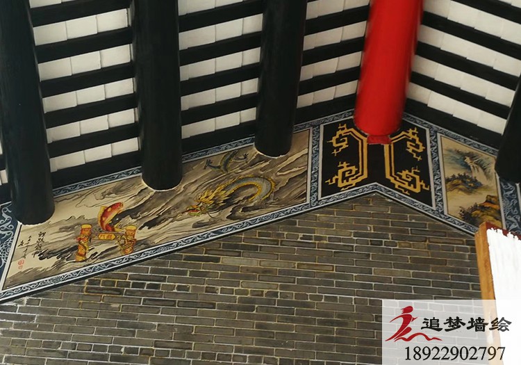 墻繪項目介紹: 這個項目的彩繪方式是和璽彩繪,金鳳和璽彩畫是建筑常見而重要的裝飾手法。它構圖嚴謹,圖案復雜一般只用于宮殿、壇廟等大建筑物的主殿,和璽彩繪表現了先進的營造技藝,又蘊涵著深厚的文化底蘊, 具有極高的美學價值、學術價值和使用價值。