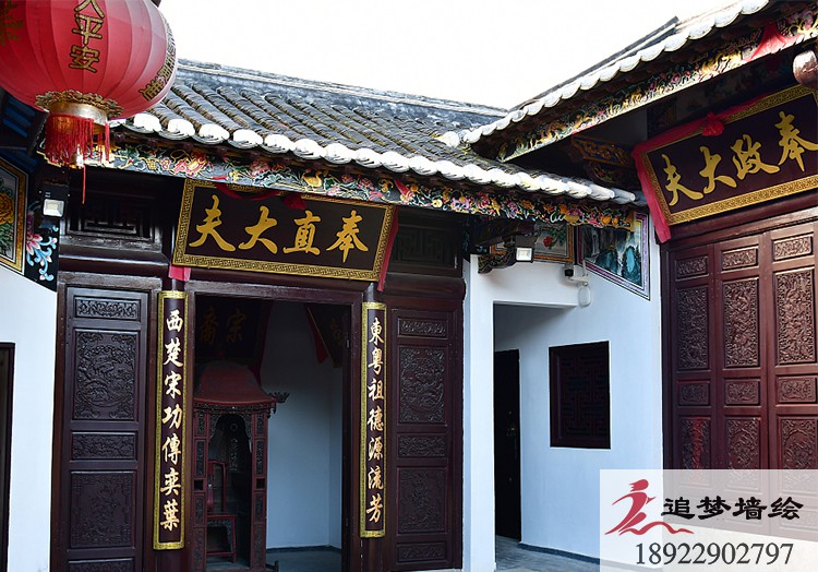 墻繪項(xiàng)目介紹: 這個(gè)項(xiàng)目的古建筑彩繪是根據(jù)嶺南文化進(jìn)行彩繪圖案設(shè)計(jì)。是由蘇式、旋子、和璽彩畫(huà)融合而成的彩繪效果與其他古建筑彩繪風(fēng)格大致一致,卻體現(xiàn)了當(dāng)?shù)靥厣?xí)俗與審美。用豐富色彩把畫(huà)面做的精彩生動(dòng),色調(diào)明快,協(xié)調(diào)統(tǒng)一,具有地方特色。