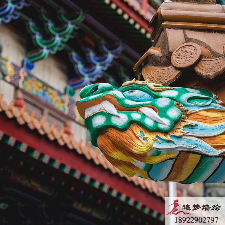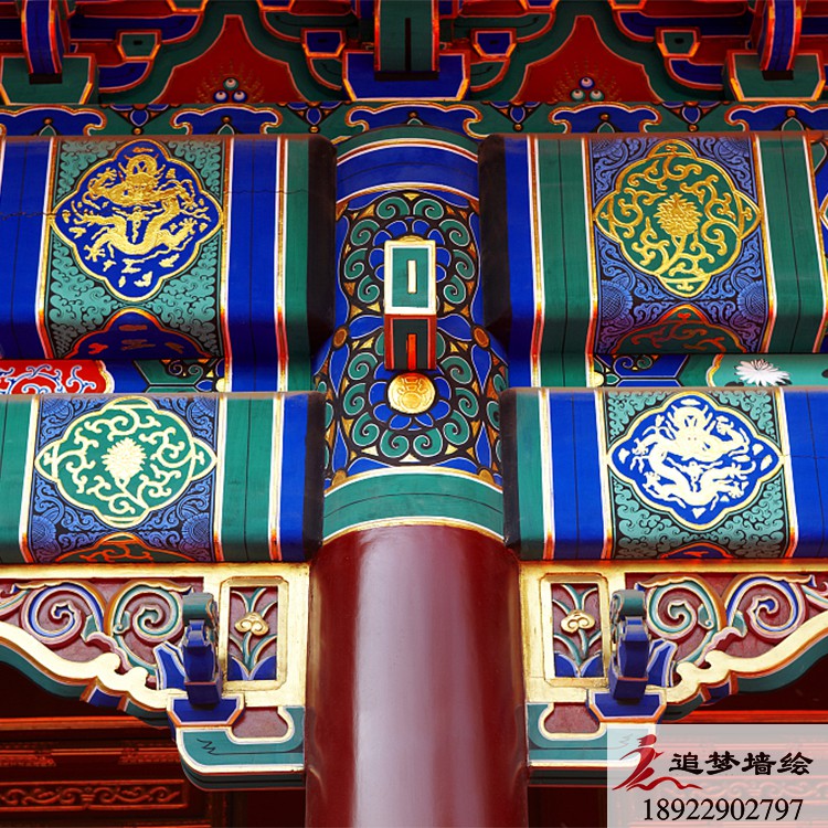 墻繪項目介紹: 這個項目的古建筑彩繪是根據(jù)嶺南文化進(jìn)行彩繪圖案設(shè)計。是由蘇式、旋子、和璽彩畫融合而成的彩繪效果與其他古建筑彩繪風(fēng)格大致一致,卻體現(xiàn)了當(dāng)?shù)靥厣?xí)俗與審美。用豐富色彩把畫面做的精彩生動,色調(diào)明快,協(xié)調(diào)統(tǒng)一,具有地方特色。