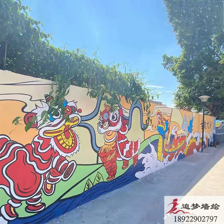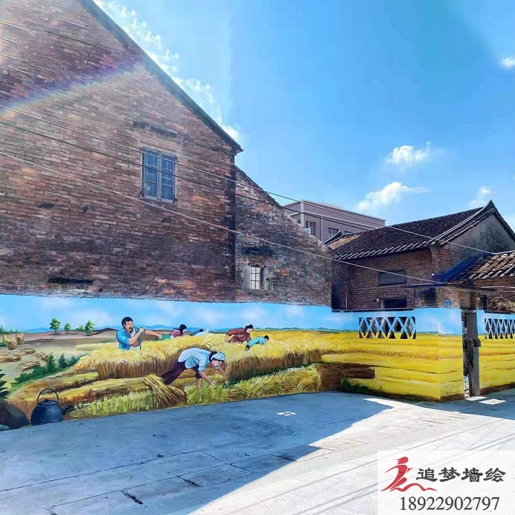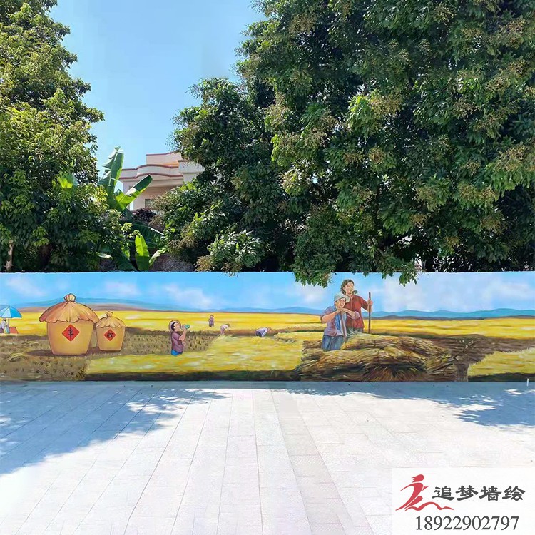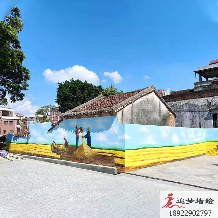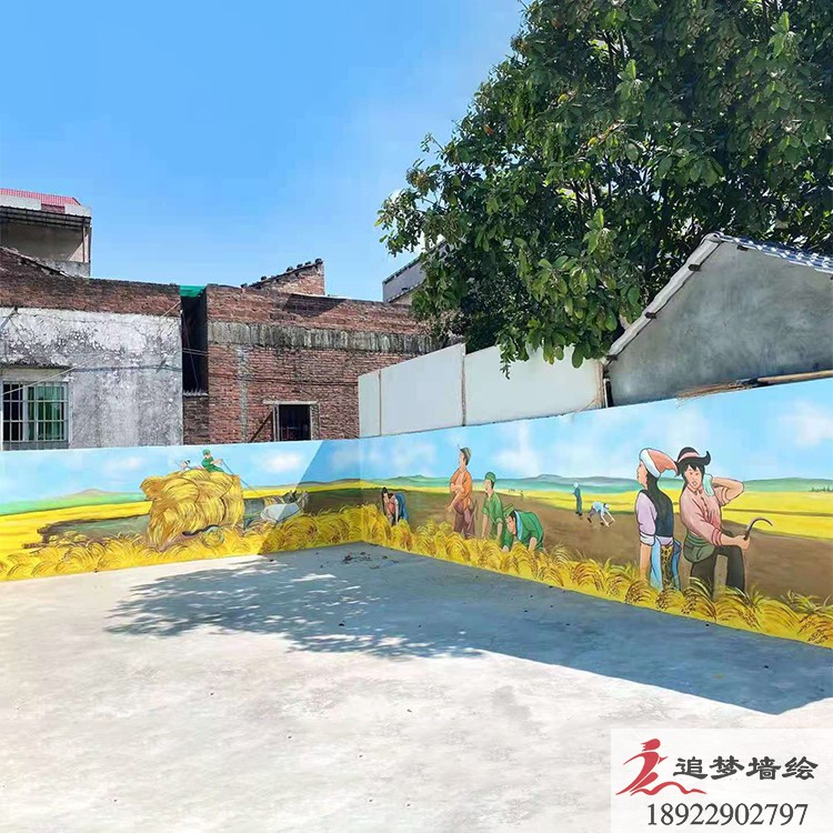佛山禪城文化墻。關(guān)于鄉(xiāng)村文化墻的繪畫,我們畫師繪畫的非常多了,這次繪畫雖然有點(diǎn)多,但對他們來說都是小菜一碟。在鄉(xiāng)村繪畫的時候最關(guān)鍵的一點(diǎn)是天氣,這幾天的天氣很好,不下雨又不是很曬,有不少的白云,這樣的天氣很適合在戶外繪畫。就四五天的時間就差不多畫完了,鄉(xiāng)村的文化墻繪畫很多時候都相似的,像農(nóng)民耕田插秧、青山綠水、本地的建筑房子、黨建文化、鄉(xiāng)村振興這些都是鄉(xiāng)村文化墻繪畫主要內(nèi)容。這些內(nèi)容的墻繪我們非常熟悉有經(jīng)驗(yàn)的,如有需要請找我們追夢墻繪。