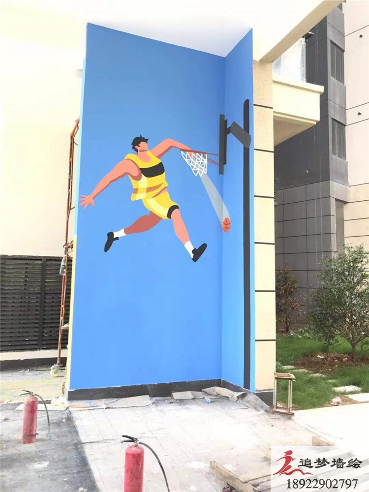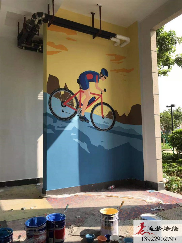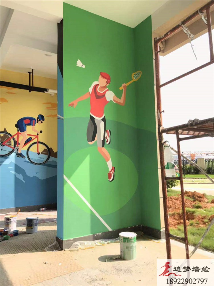 墻繪項目介紹:整體為運動主題,圖案以人物動態及動物,視覺感強。墻繪整體搶眼。