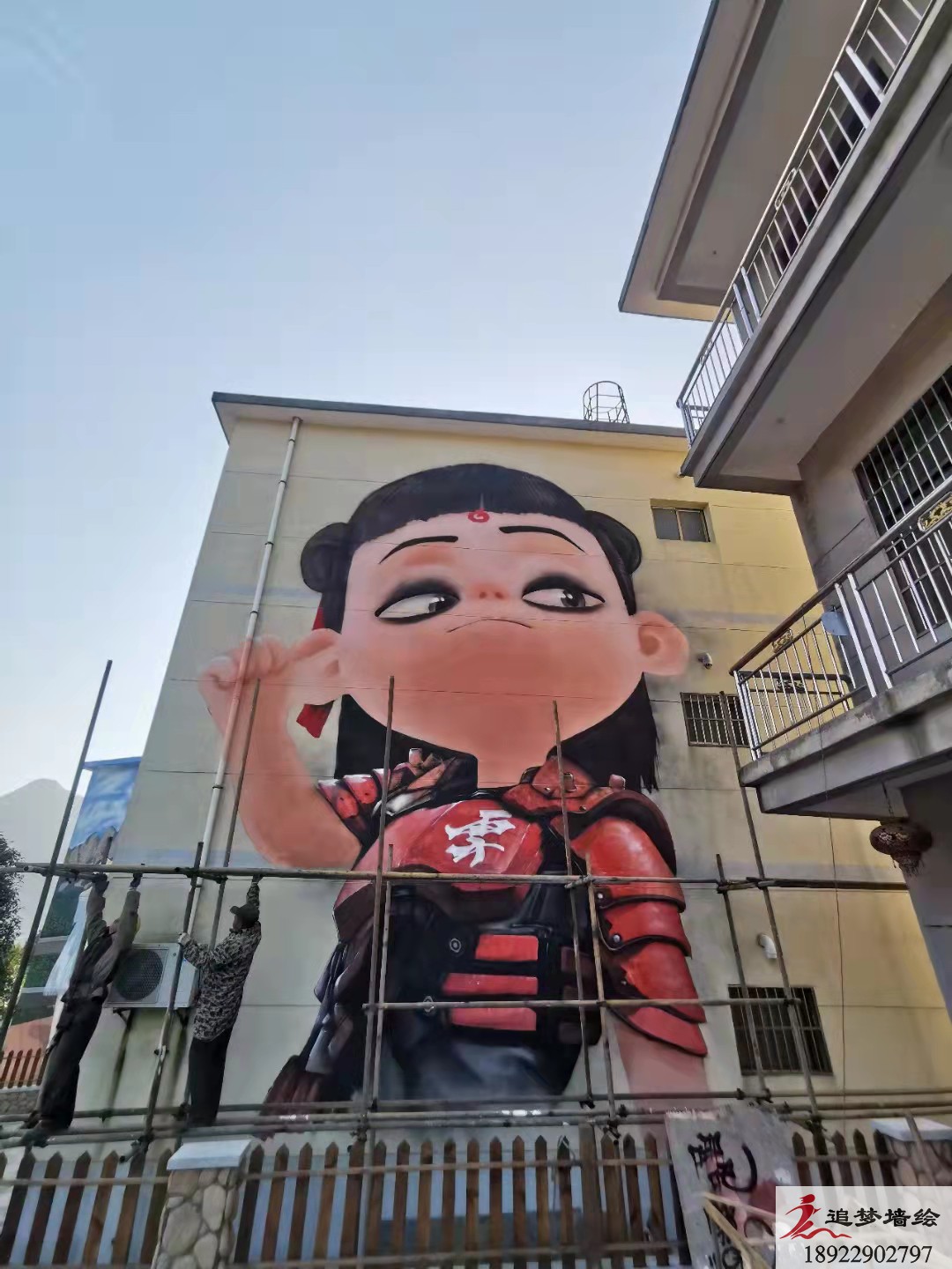 此墻繪用了3d的繪畫方式,這種方式具有互動性,生動有趣又能與建筑很好的結合起來。